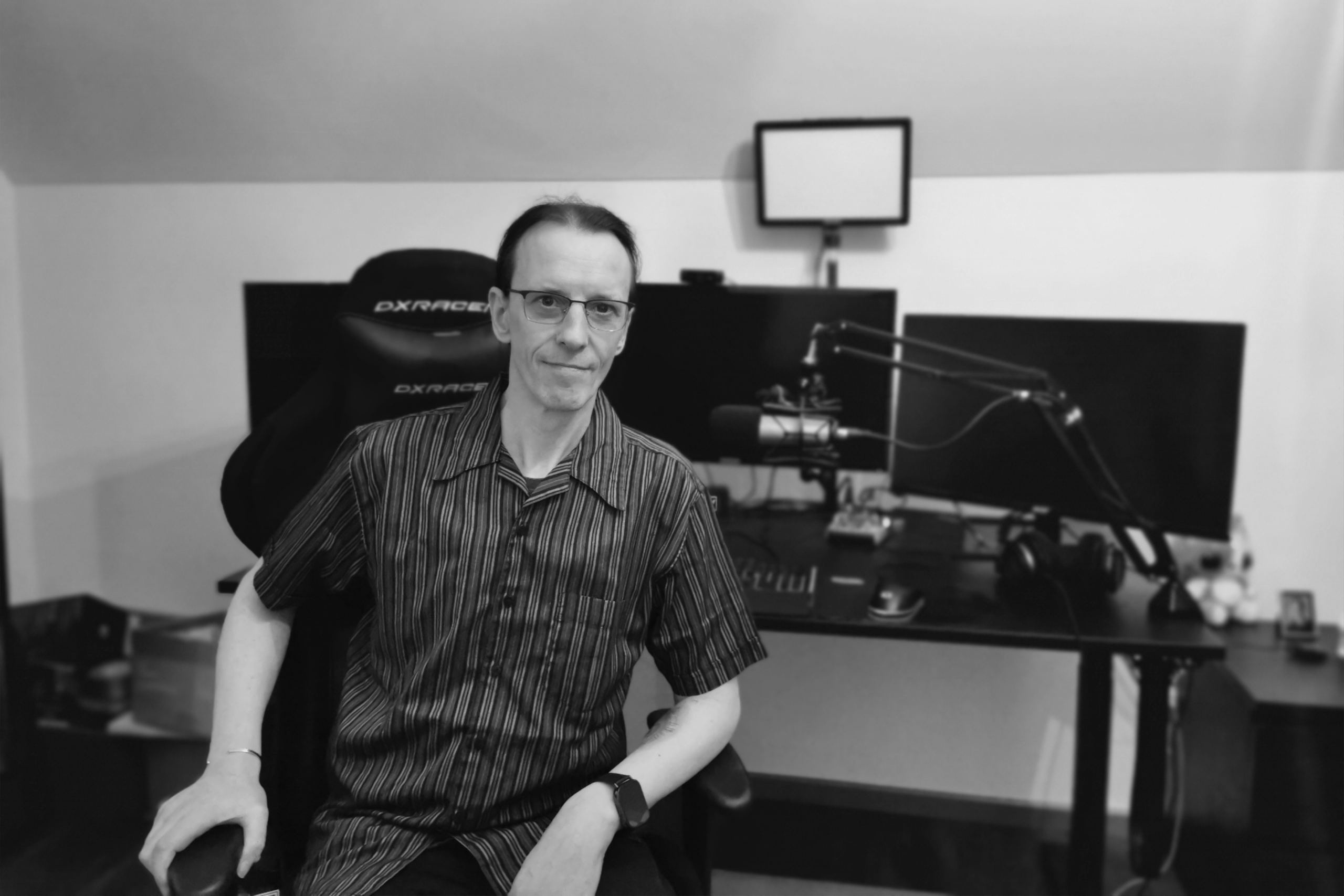 „Aufgewachsen bin ich in einer ländlichen Gegend im Bergischen Land (NRW). Meine Kindheit verbrachte ich größtenteils in der Natur, bis mit einem C64 meine Leidenschaft fürs Gaming entfacht wurde. Seitdem faszinieren mich virtuelle Welten und Technik. Beruflich führte mich mein Weg zunächst zur Bundespolizei mit dem Ziel Pilot zu werden, später absolvierte ich eine Ausbildung zum Gärtner mit Fachrichtung Baumschulen. Heute arbeite ich im Homeoffice in der Projektsteuerung – eine spannende Mischung aus Struktur, Planung und Technik.“